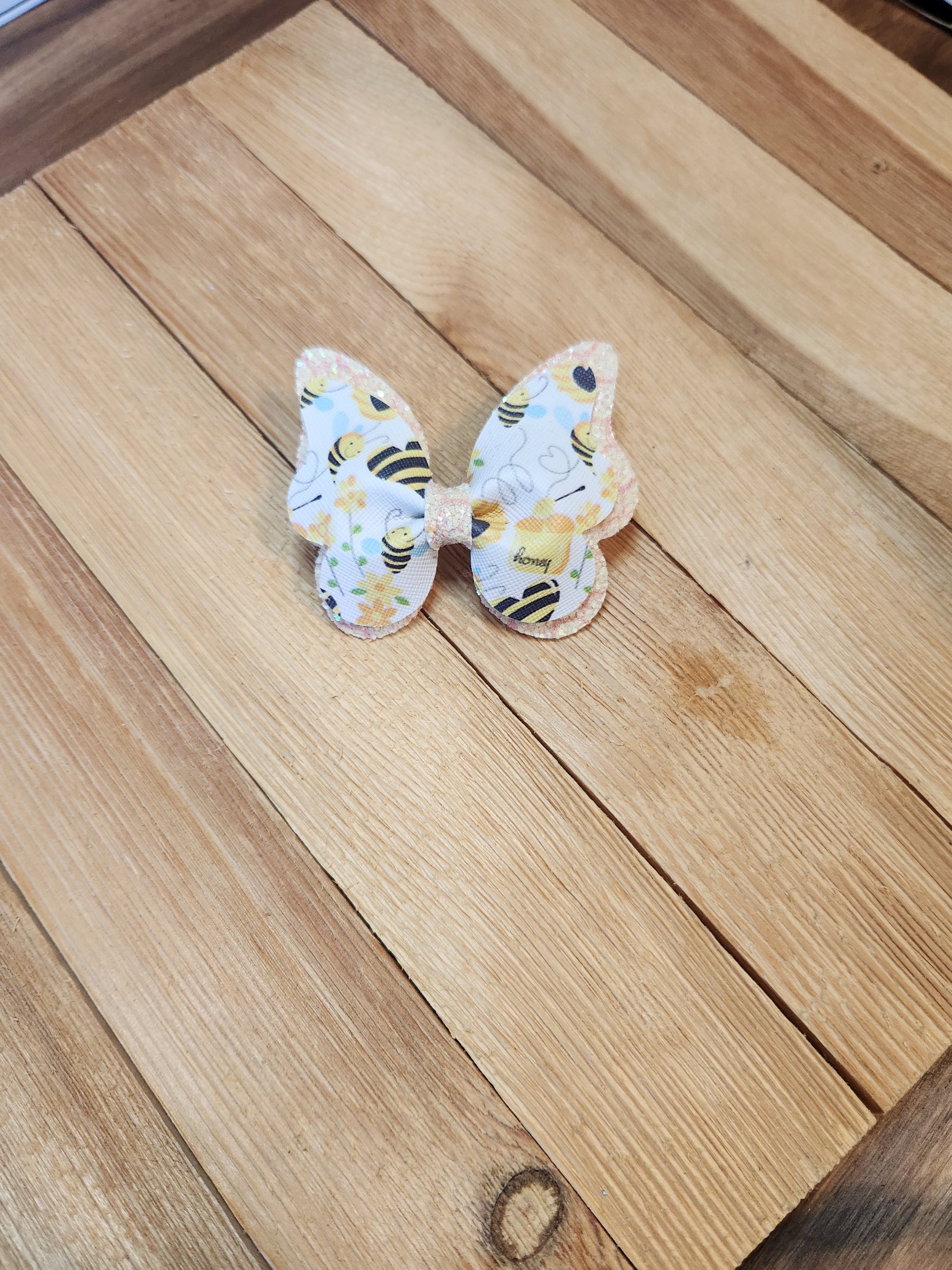 3" Faux leather 2 layer Butterfly shaped bow.